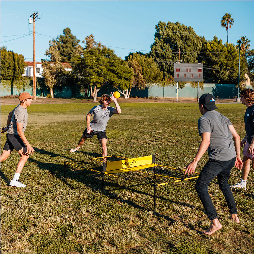 SmashNet is played to 11 points with the goal of defending your side with only three hits. Players divide into two teams and take turns serving diagonally to the opposing player, where they must return the ball over the net in three alternating hits or less.