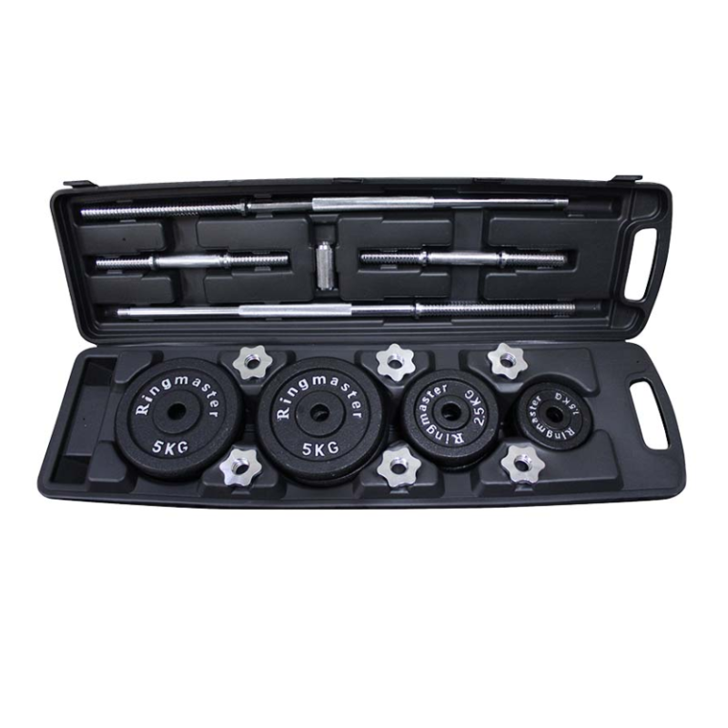 Ringmaster 50kg Weight Set With 2 Pc Bar And Carry Case